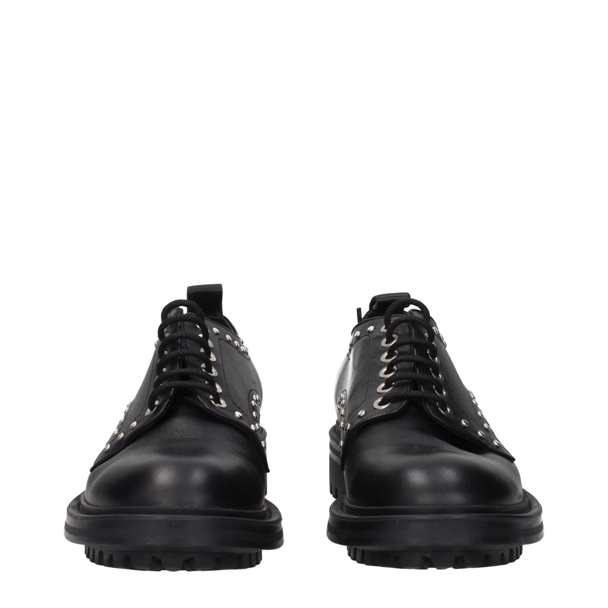 Description: The product with MPN 552607226001 and code F84147 leather in black is a lace up and monkstrap designed by Max Mara. It has features like studs, back detail.