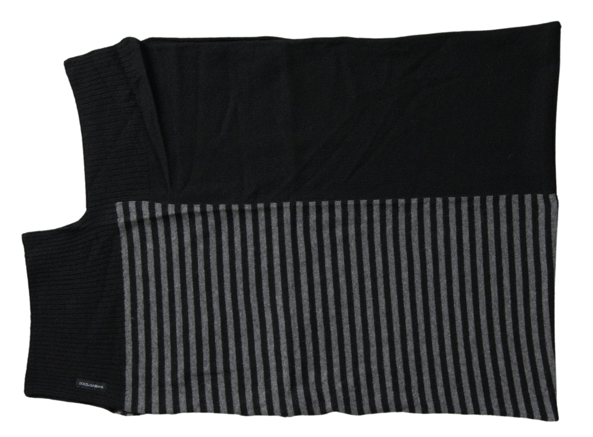 Dolce & Gabbana Black Gray Stripe Wool Neck Wrap Shawl Scarf