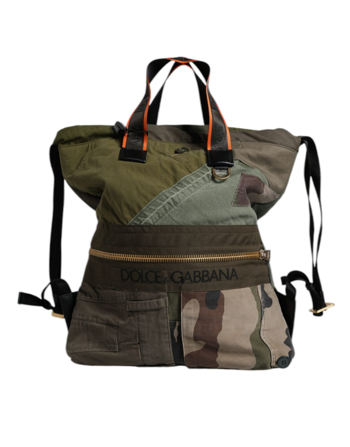 Dolce & Gabbana Military Green Patchwork Rucksack Backpack Bag
