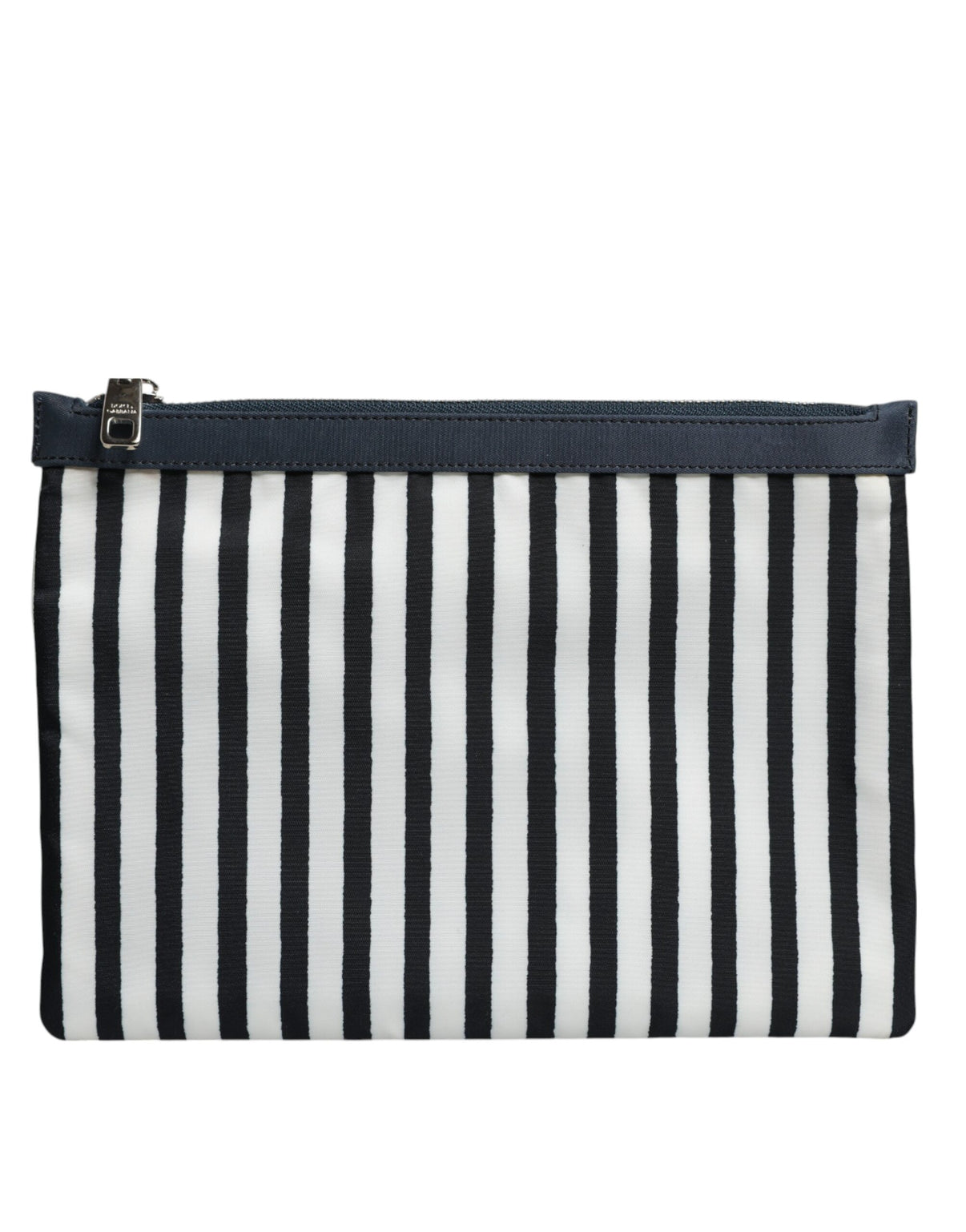 Dolce & Gabbana Black White Striped Logo Plaque Clutch Borse Pouch Bag