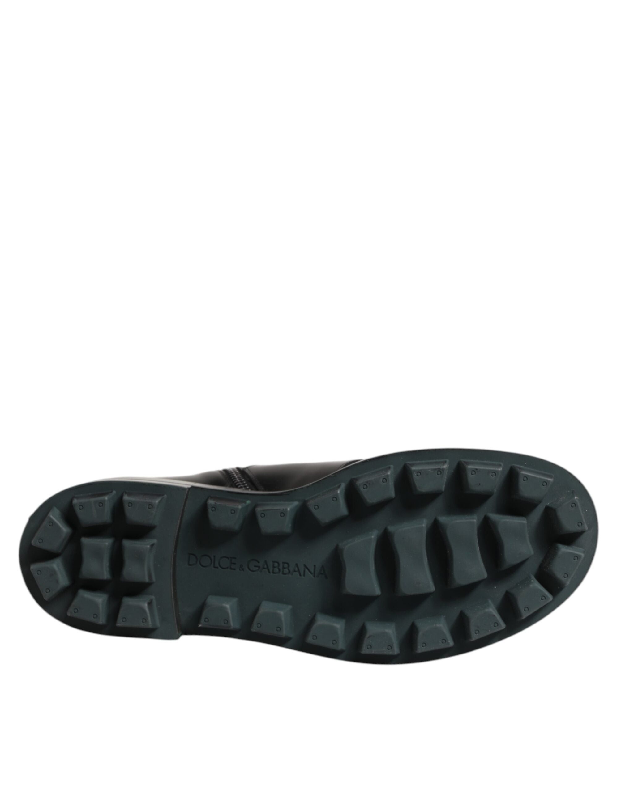 Dolce & Gabbana Black Logo Plaque Mid Calf Biker Boots Shoes