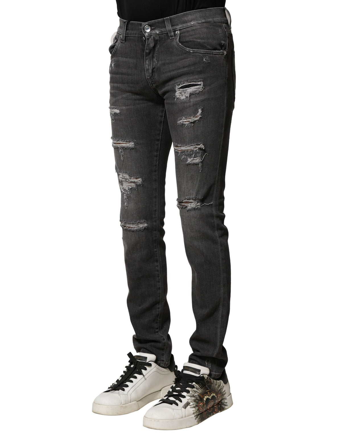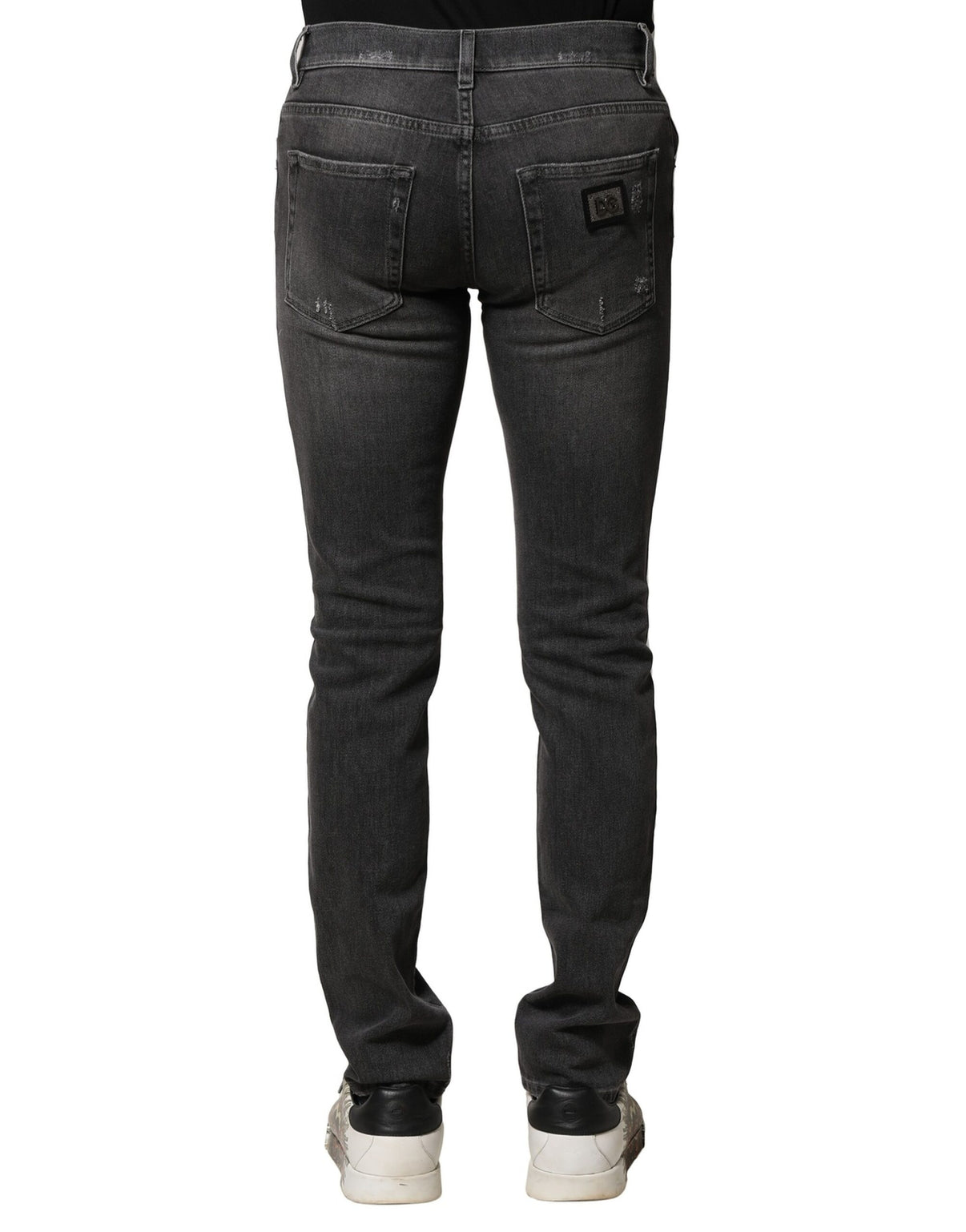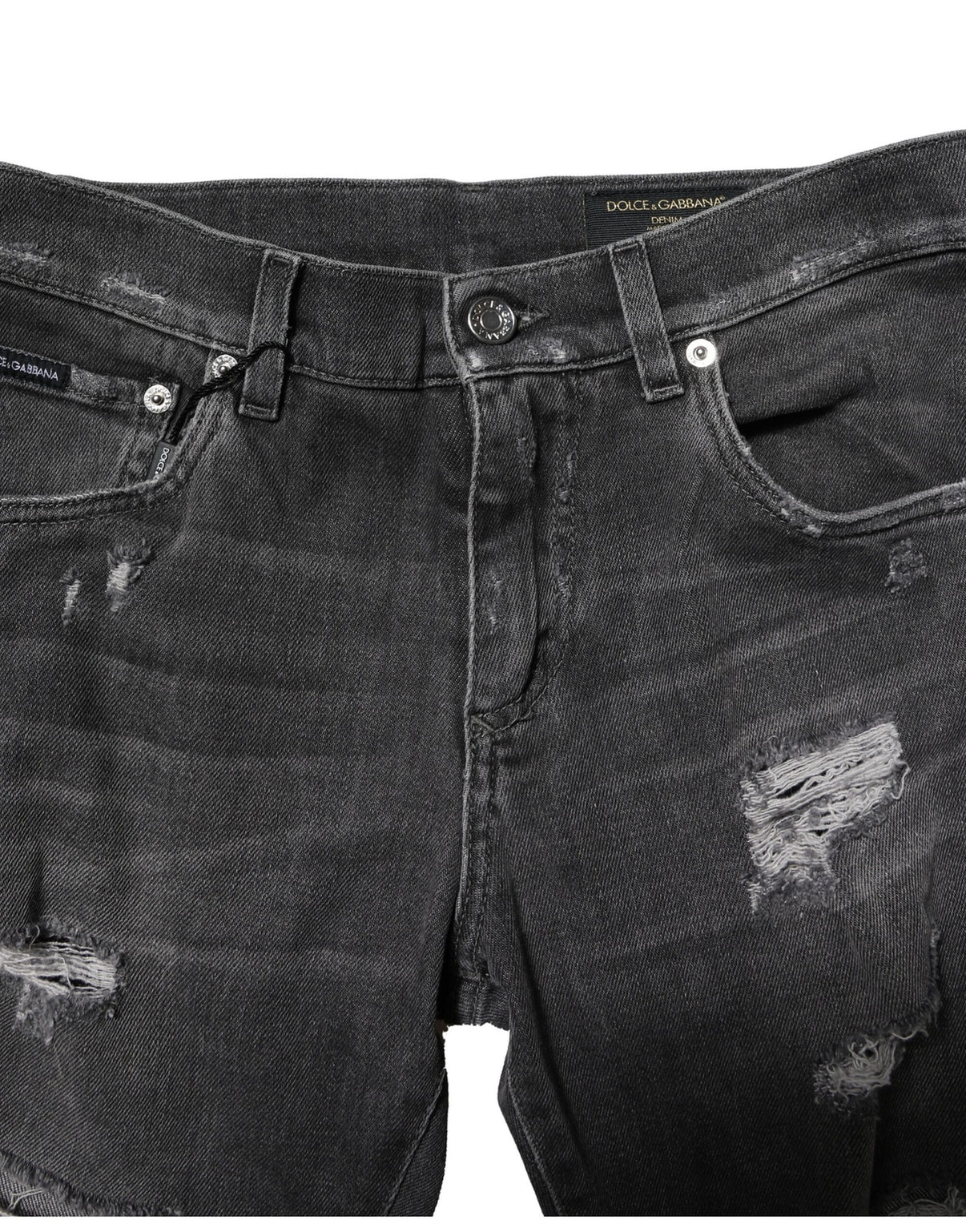 Dolce & Gabbana Black Washed Tattered Slim Fit Denim Jeans