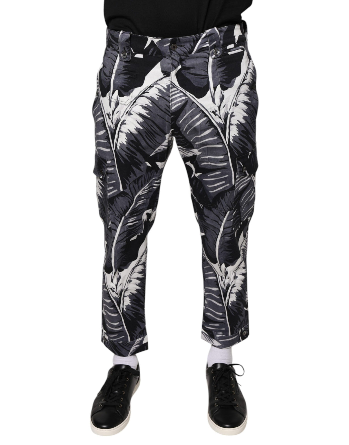 Dolce & Gabbana Gray Banana Leaf Cotton Stretch Capri Pants