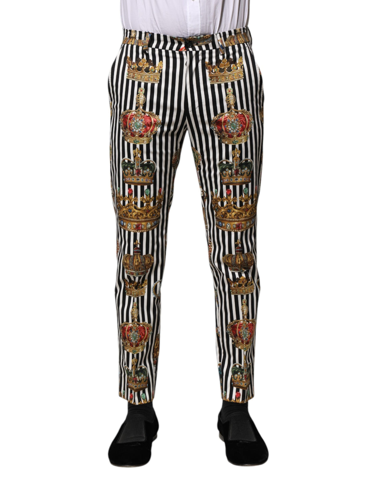 DOLCE & GABBANA Gorgeous brand new, 100% Authentic Dolce & Gabbana dress pants. Model: Formal pants Color: Black, white striped with crown print Material: 97% Cotton 3% Elastane Two front...