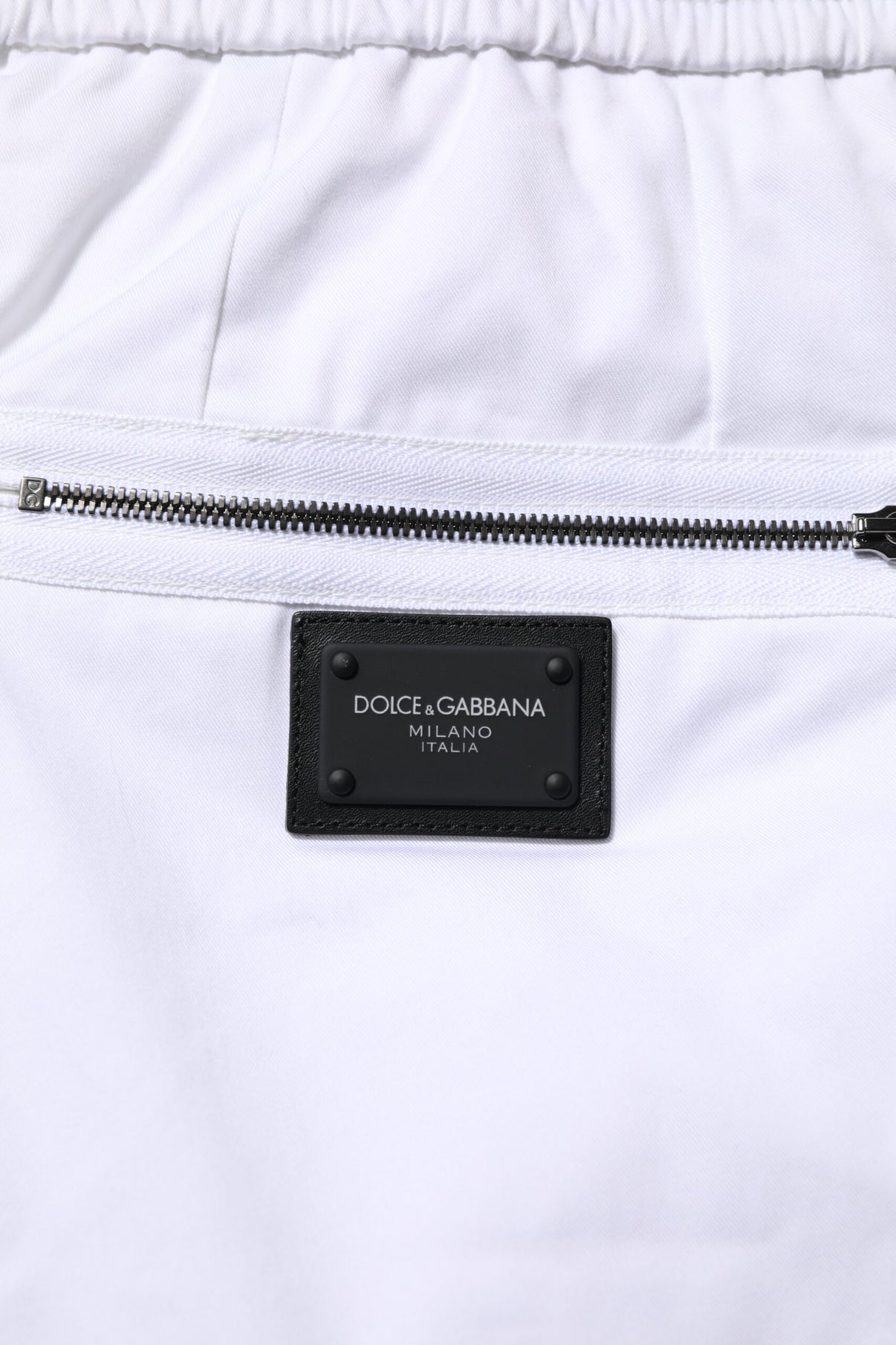 Dolce & Gabbana White Cotton Stretch Logo Men Jogger Pants