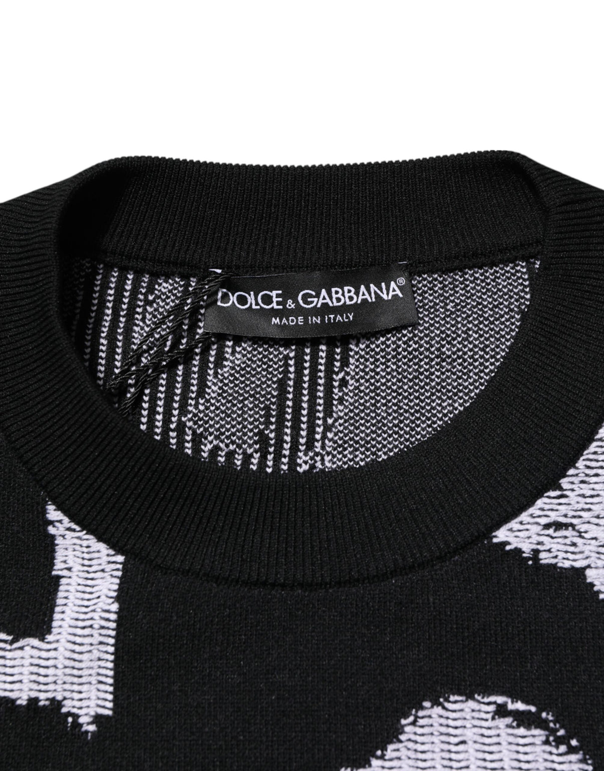 Dolce & Gabbana Black Nylon Wool Heart Print Pullover Sweater