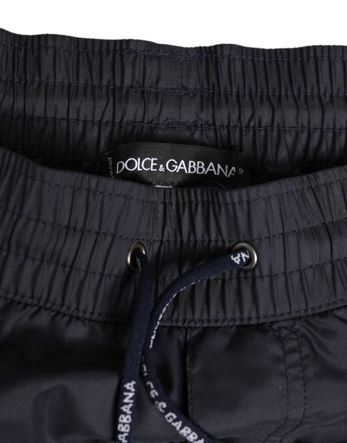 Dolce & Gabbana Black White Polyester Logo Elastic Waistband Swimwear