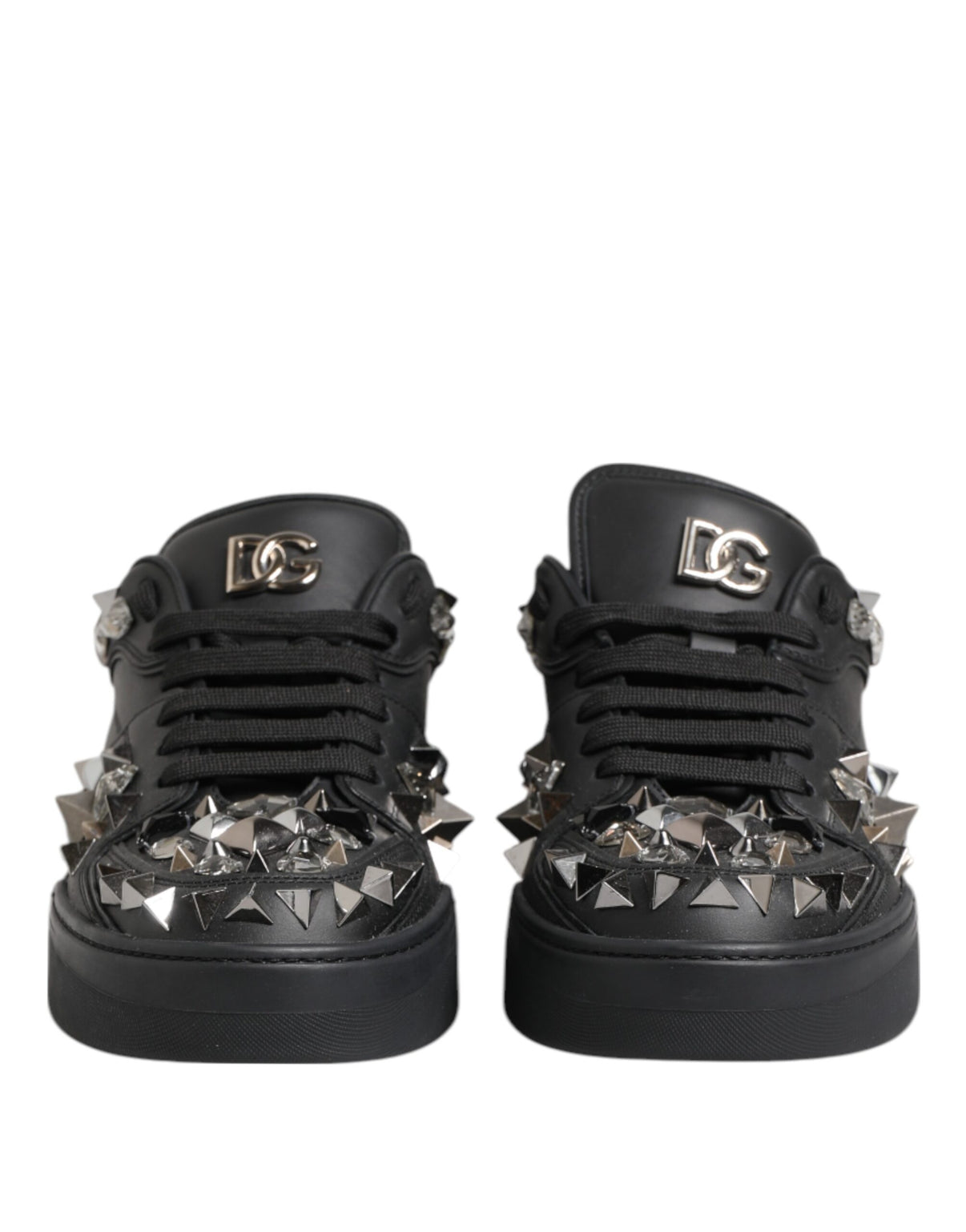 Dolce & Gabbana Black Leather Studded Low Top Sneakers Shoes