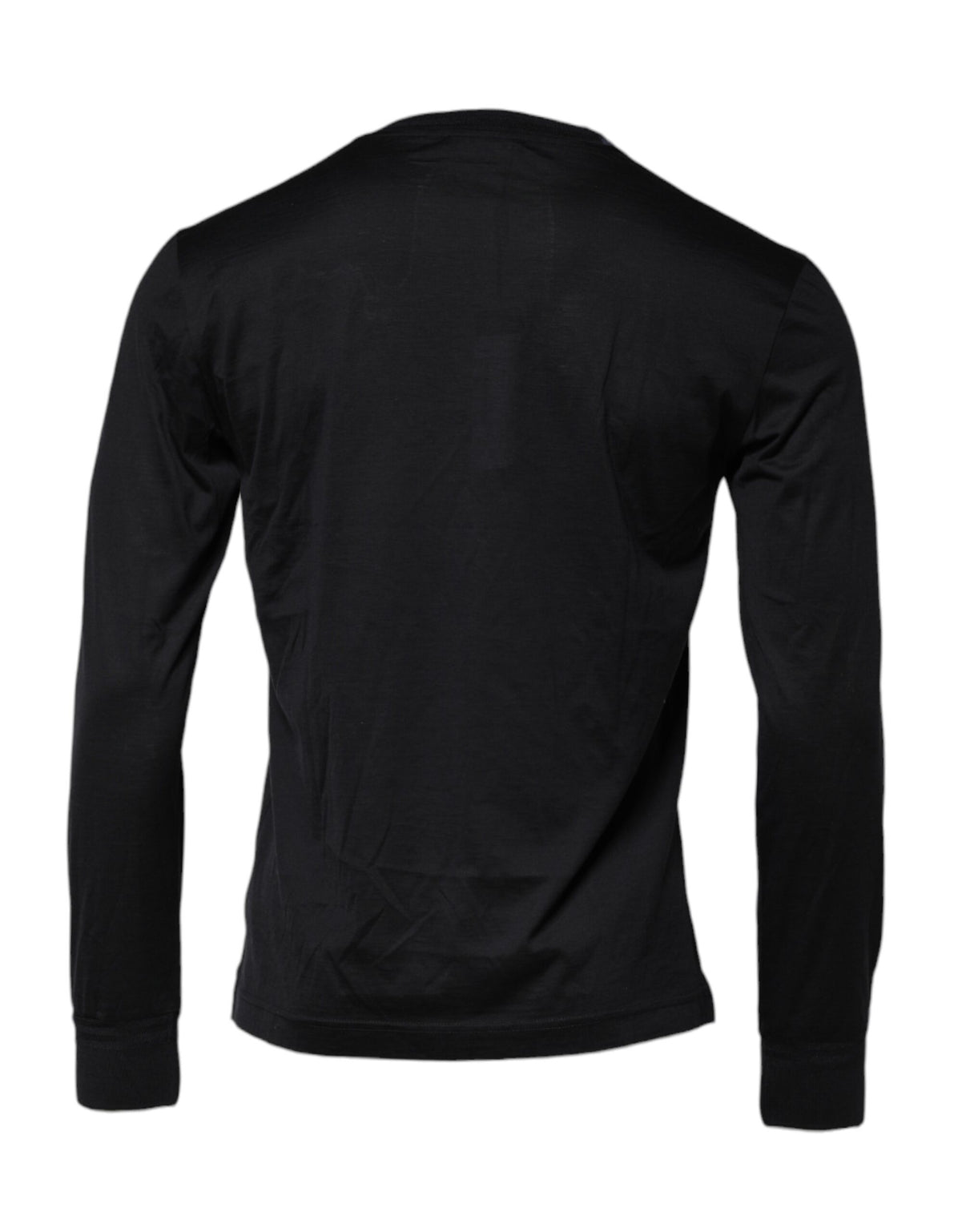 Dolce & Gabbana Dark Blue Silk Crew Neck Men Pullover Sweater