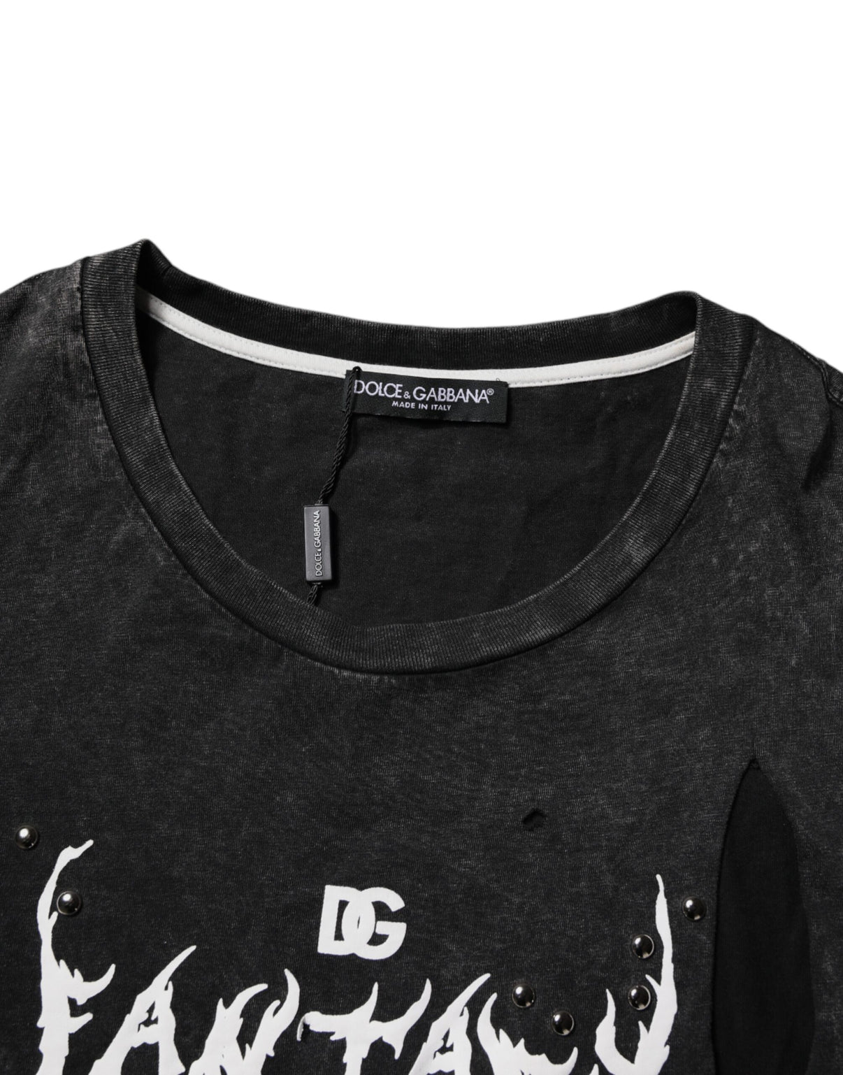 Dolce & Gabbana Black Graphic Print Cotton Crew Neck T-shirt