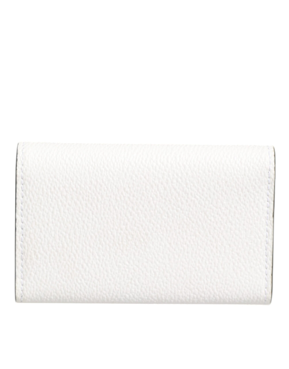 Dolce & Gabbana White Leather Card Case Holder Wallet Gold Logo Plate Key Holder
