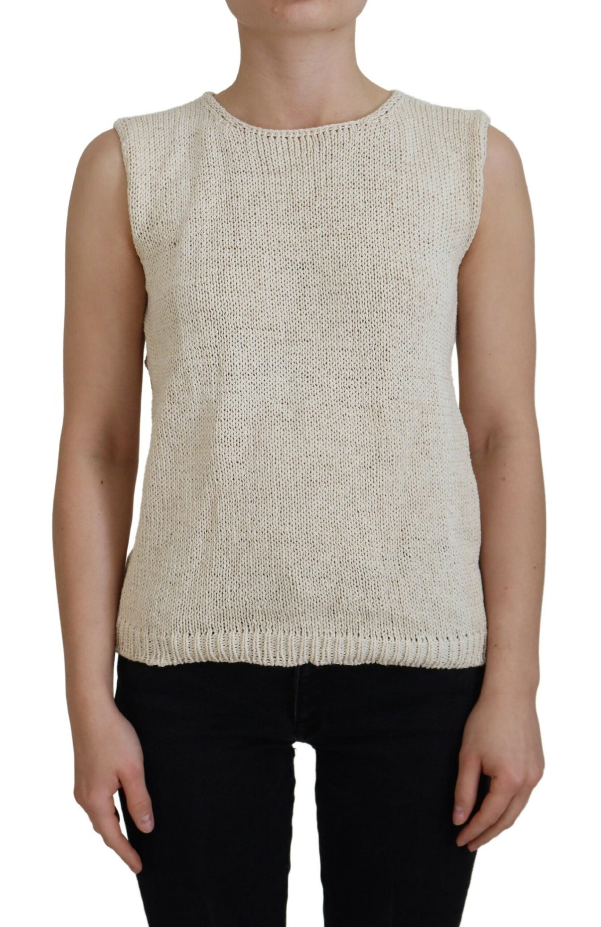 PINK MEMORIES Beige Cotton Blend Sleeveless Round Neck Tank Top