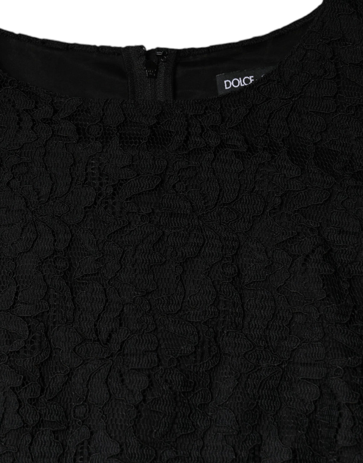 Dolce & Gabbana Black Floral Lace Sheath Sleeveless Mini Dress