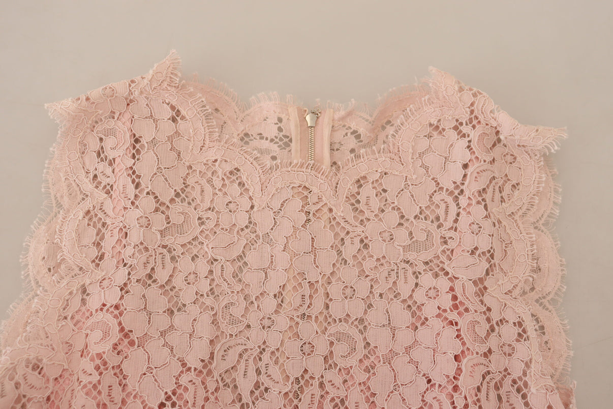 Dolce & Gabbana Pink Floral Lace Sleeveless Tank Blouse Top