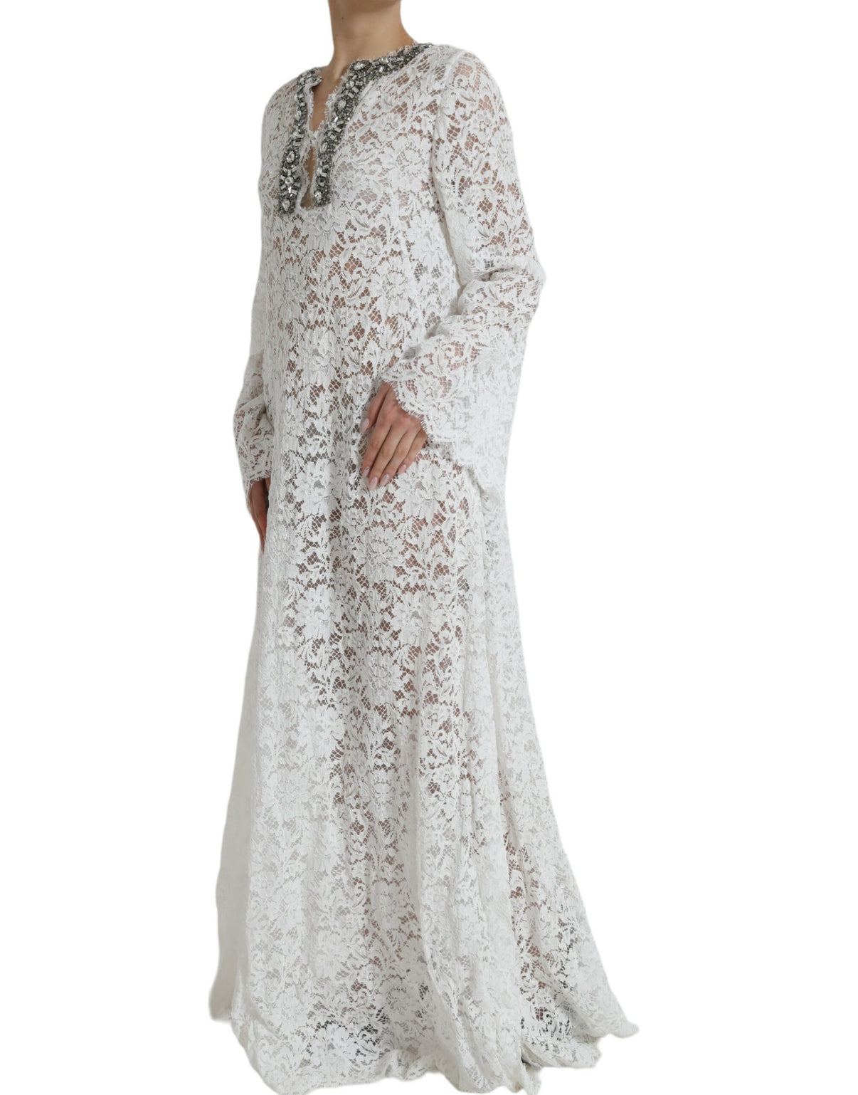 Dolce & Gabbana White Lace Crystal Embellished Shift Dress