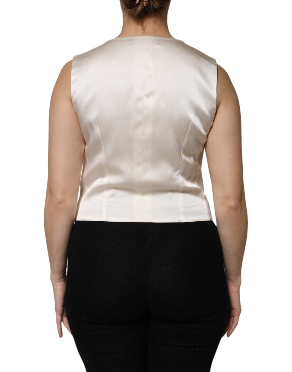 Dolce & Gabbana Ivory Cotton Button Down Sleeveless Vest Top
