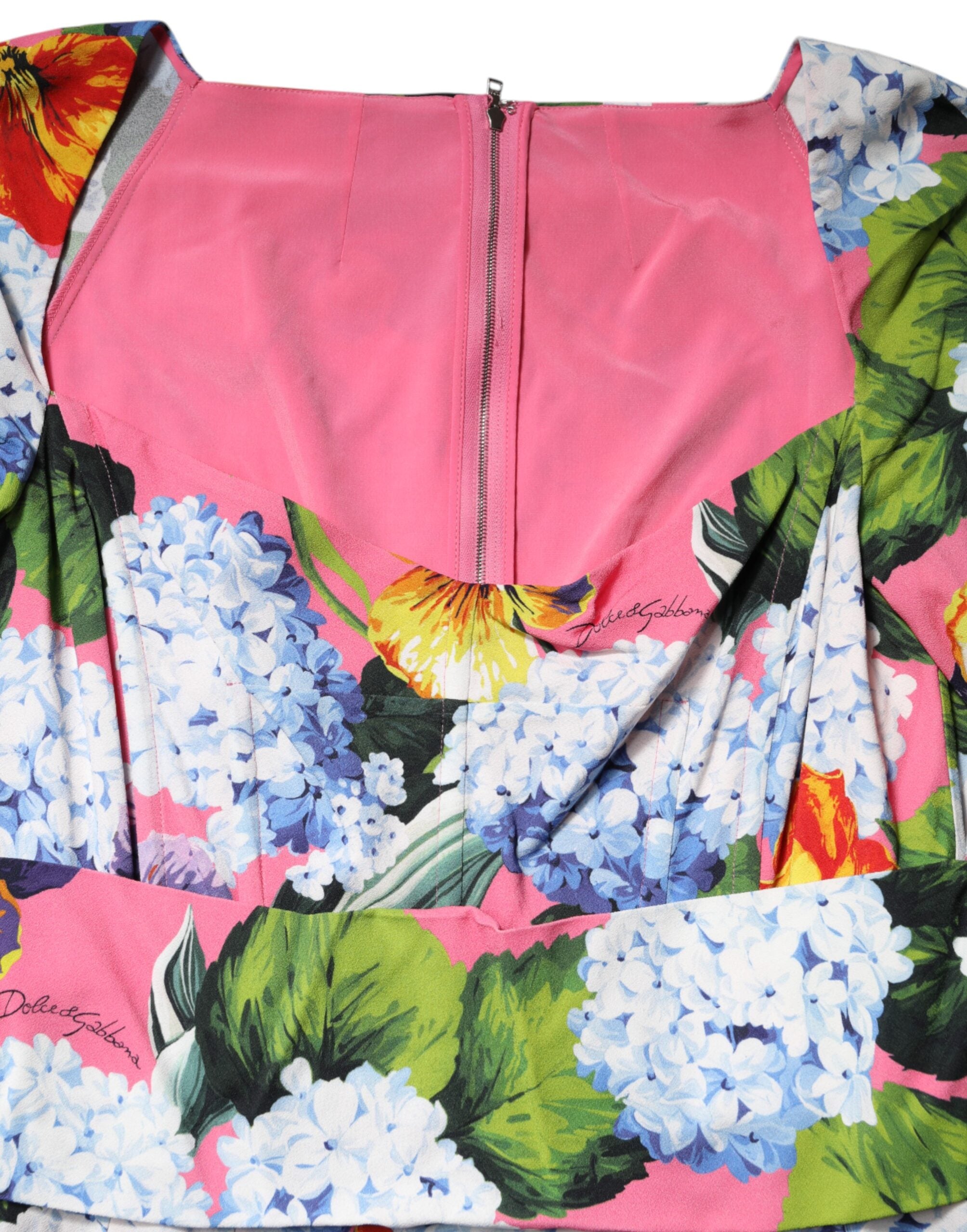 Dolce & Gabbana Multicolor Floral Pleated Sheath Midi Dress