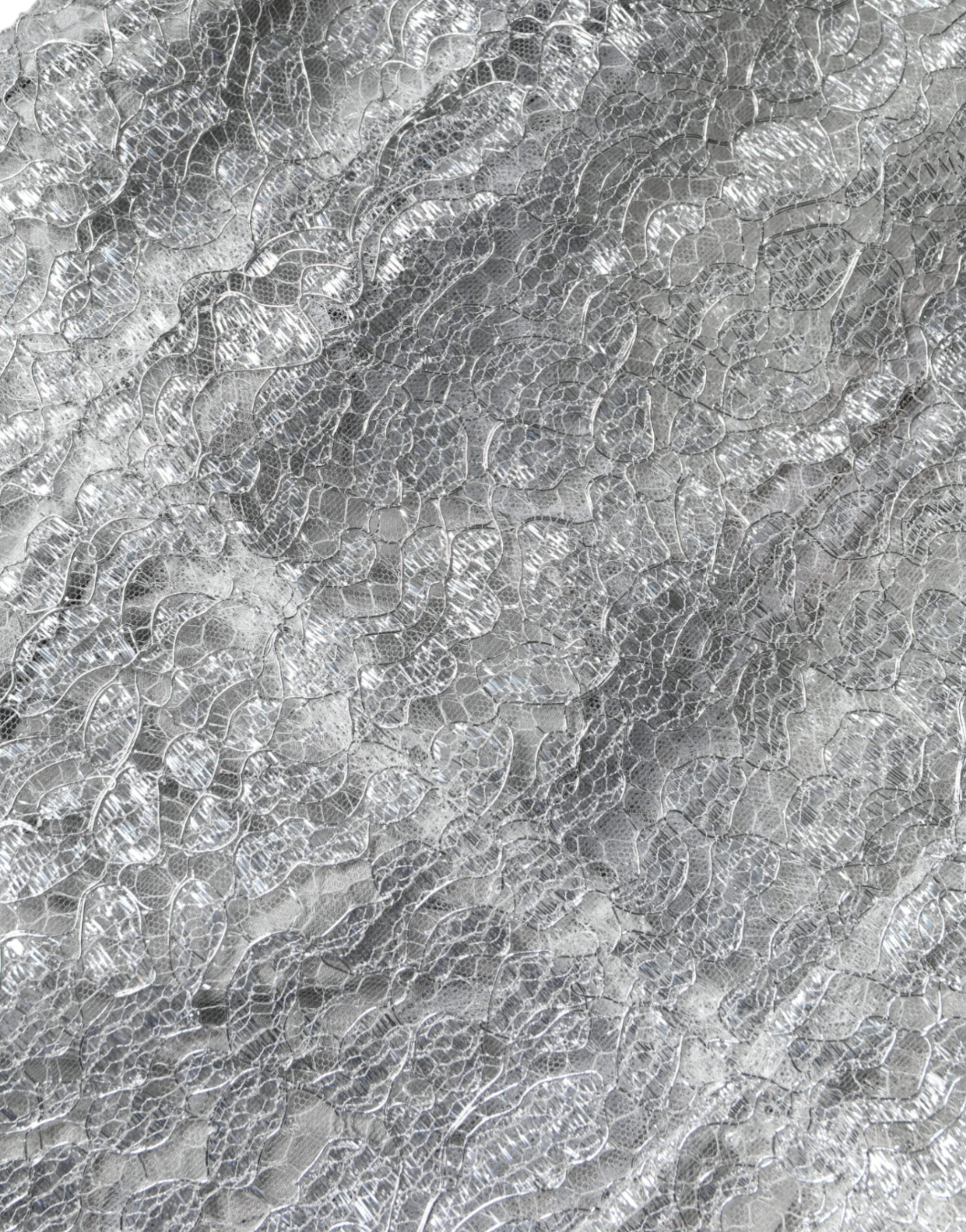 Dolce & Gabbana Silver Floral Lace Bodycon Sheath Midi Dress