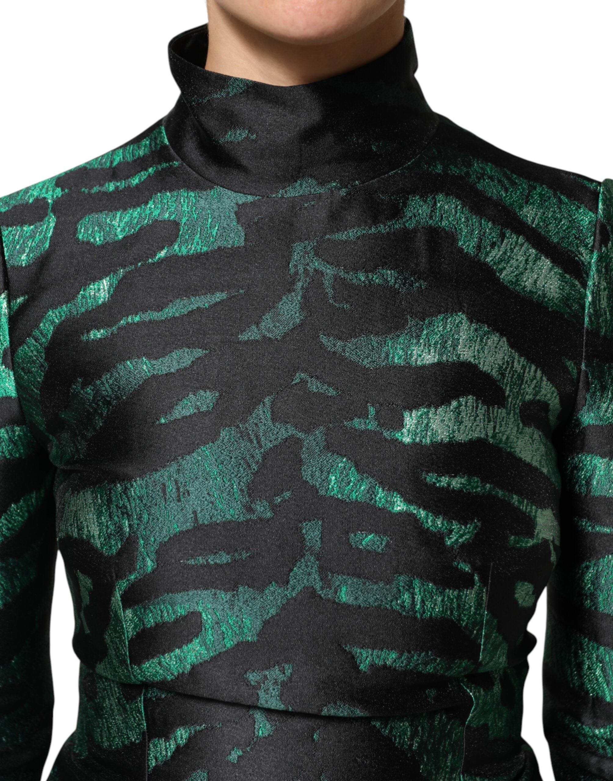 Dolce & Gabbana Black Green Metallic Jacquard Mini Long Dress