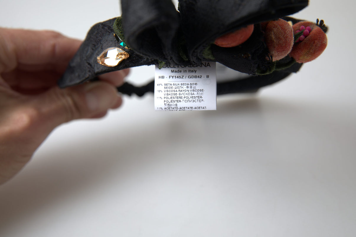 Dolce & Gabbana Black with multicolor Fig Fruit Crystal Tiara Diadem Headband