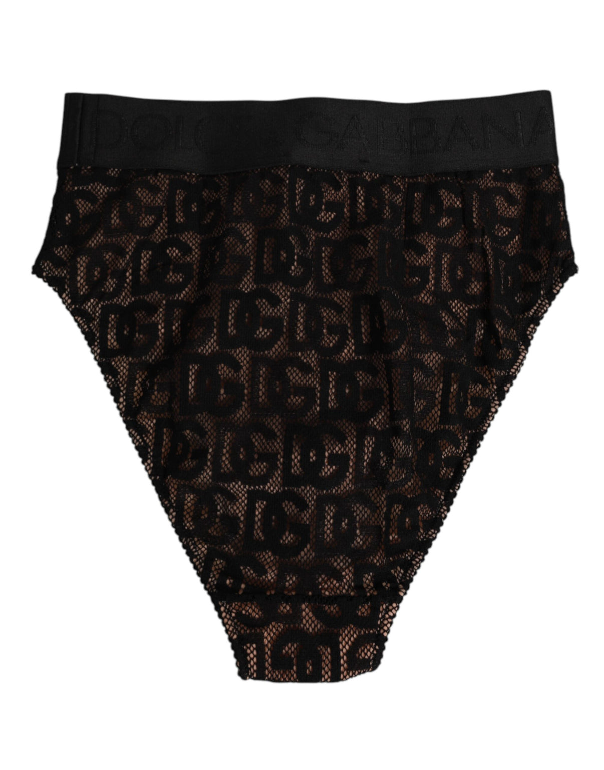 Dolce & Gabbana Black DG Logo Lace High Brief Panty Underwear