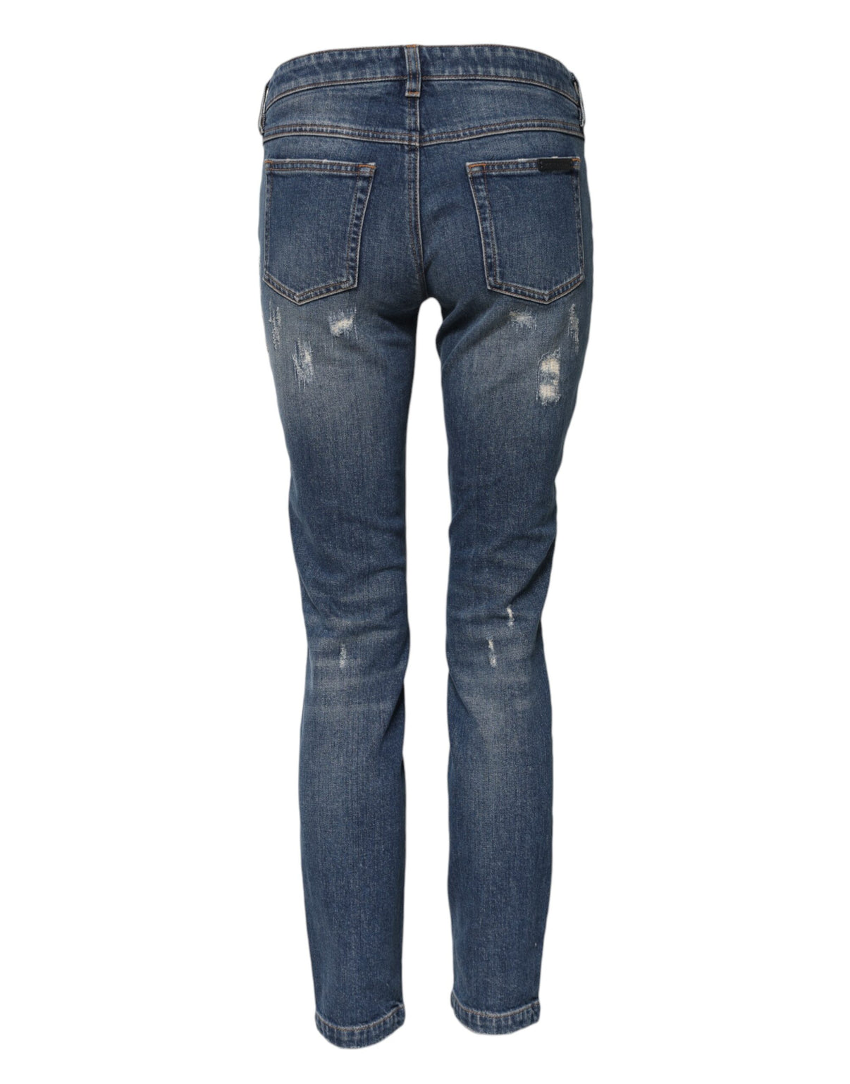 Dolce & Gabbana Blue Play Card Embroidery Skinny Denim Jeans