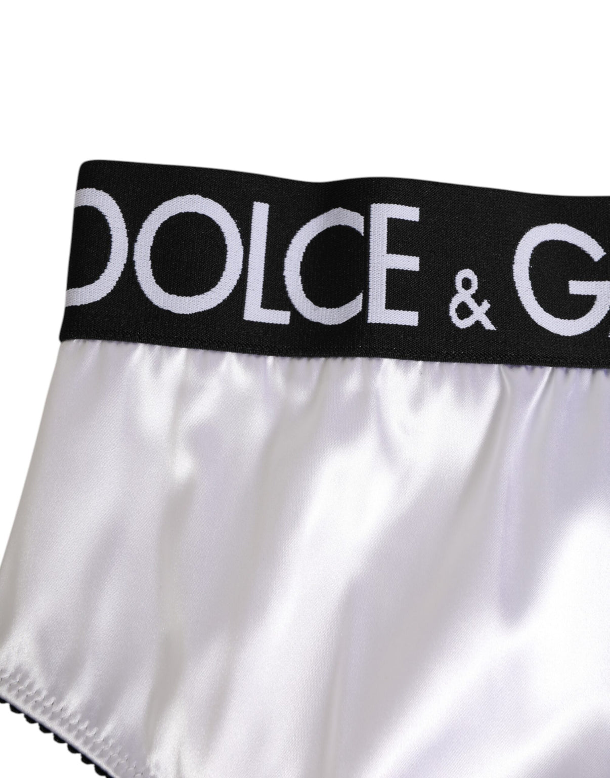 Dolce & Gabbana White Satin High-Waist Black Logo Women Underwear