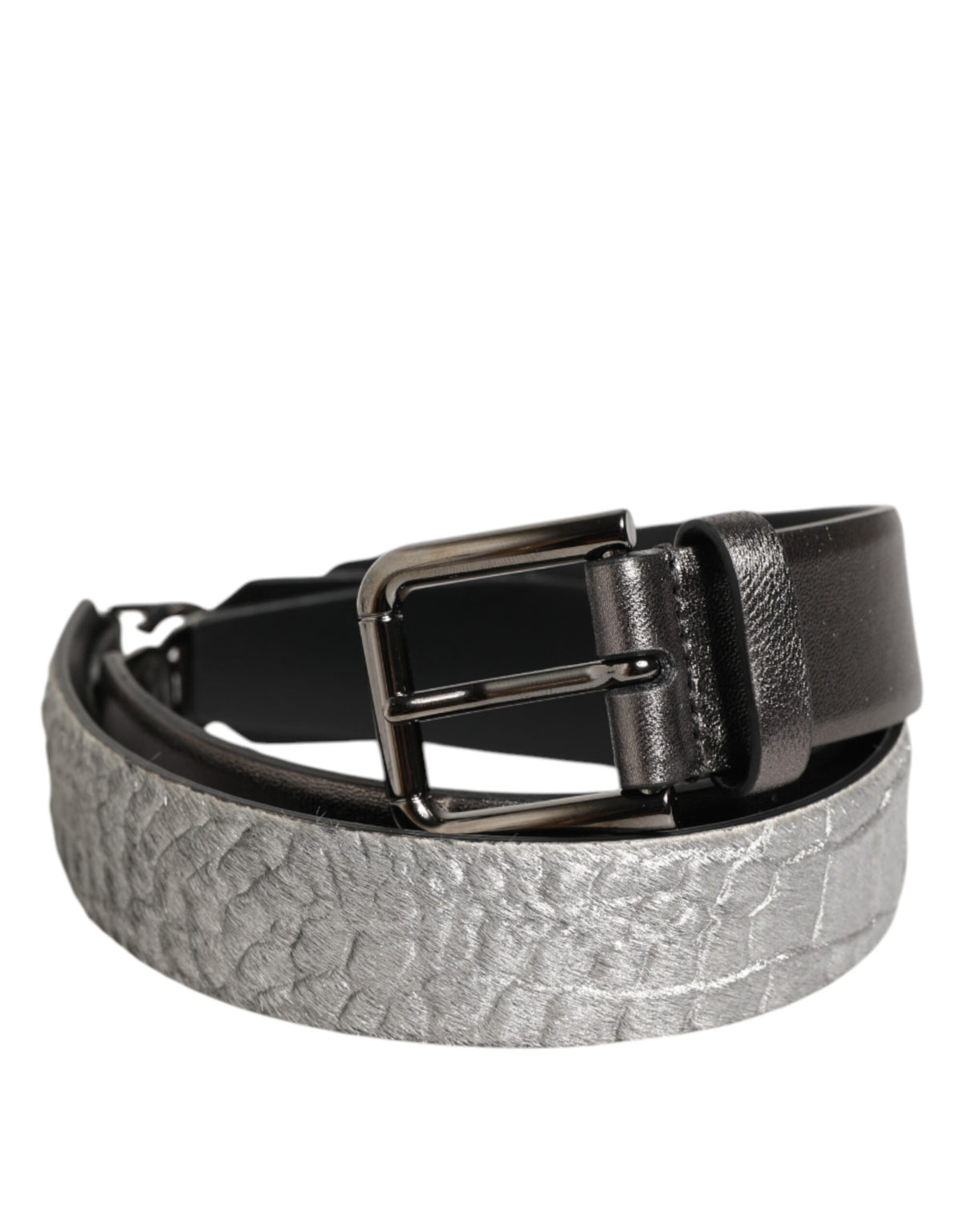 Dolce & Gabbana Black Silver Pebbled Texture Leather Buckle Men Belt