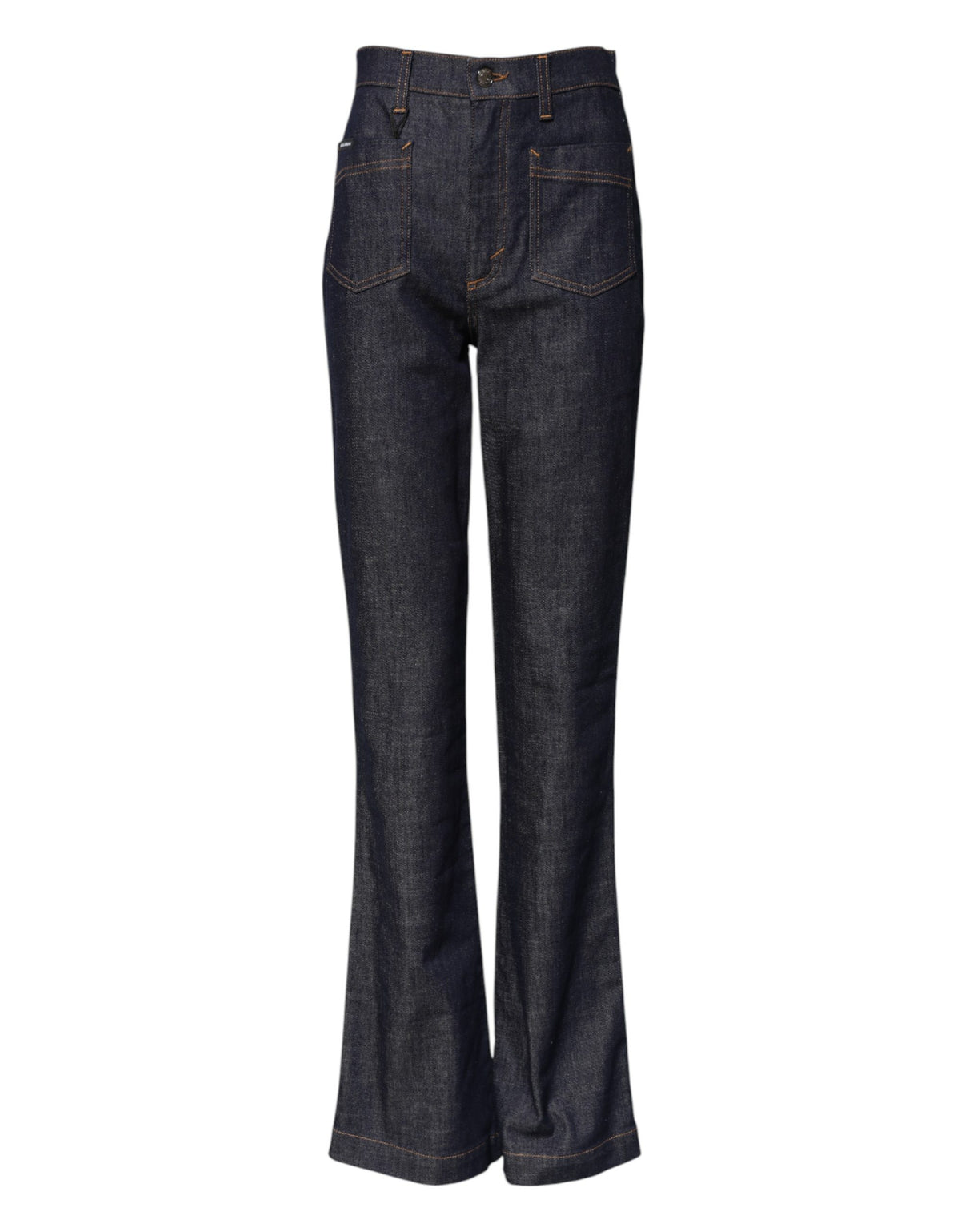 Dolce & Gabbana Dark Blue Cotton Flared Wide Leg Denim Jeans