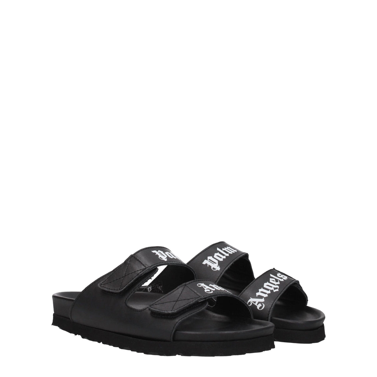 The product with MPN PWIH010LEA0011001 and code F76760 leather in black is a sandals designed by Palm Angels. It has features like front logo.